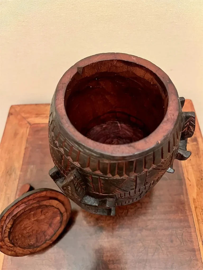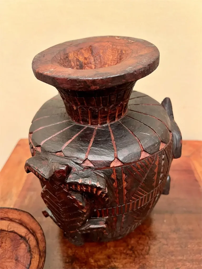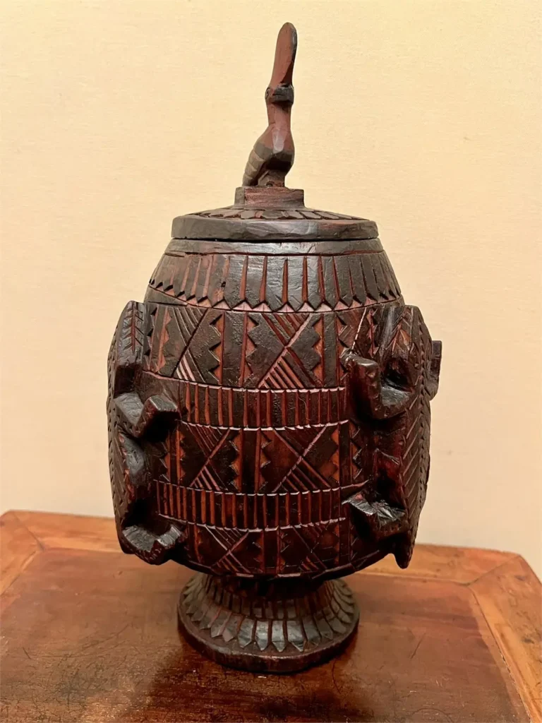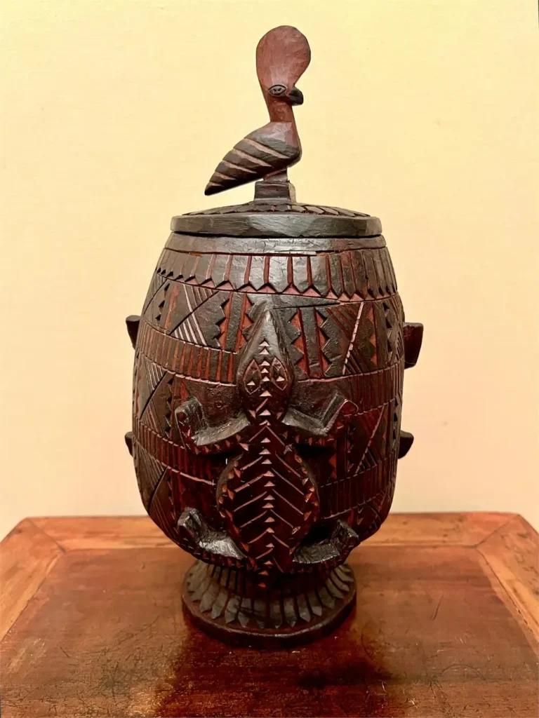 Boîte sculptée en bois massif d’Afrique de l’Ouest, art traditionnel Dogon.