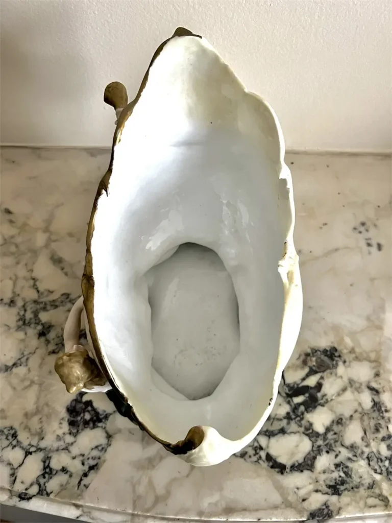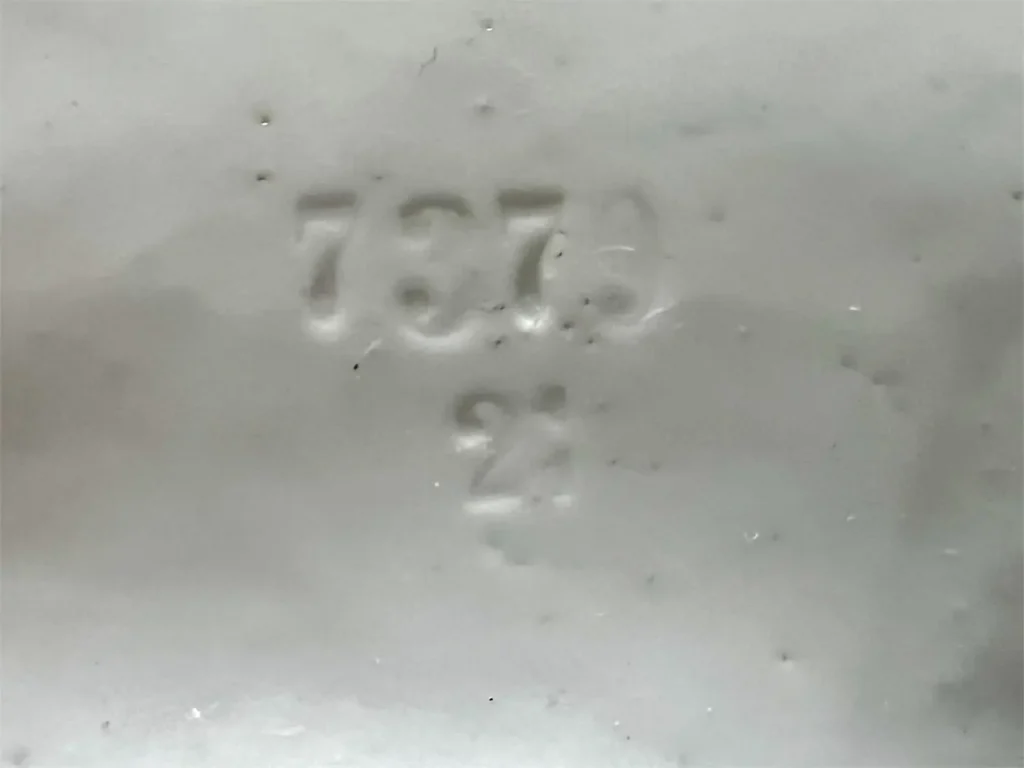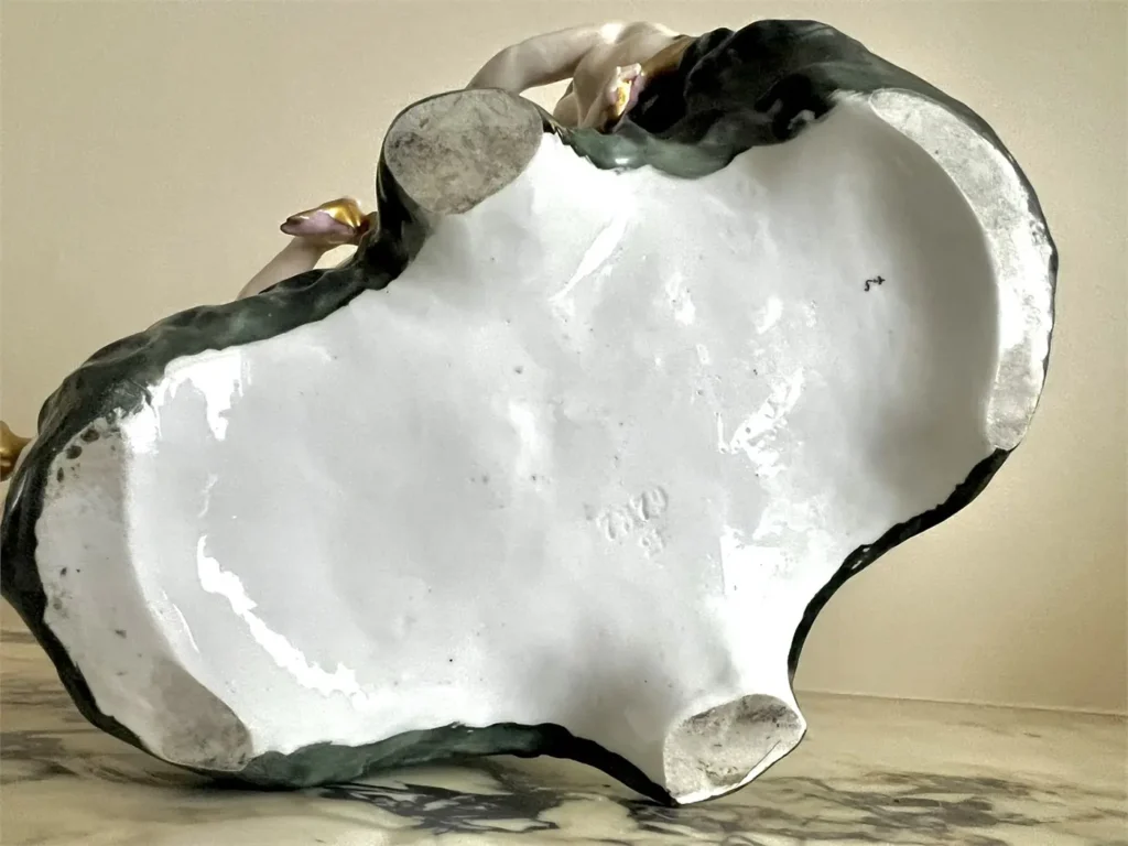 Le dessous porte le numéro de moule en creux « 7379 / 21 » ainsi qu’une marque de peintre décorateur.
