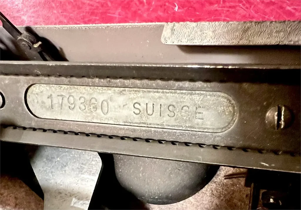 Mention “Suisse” et numéro de série frappé sur la machine.